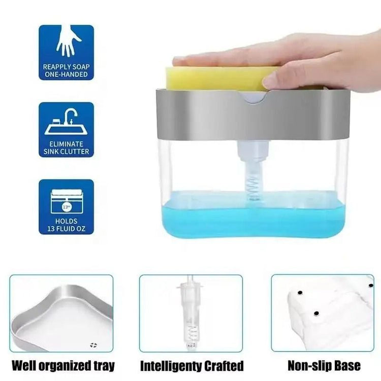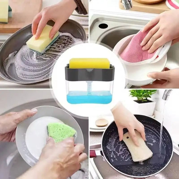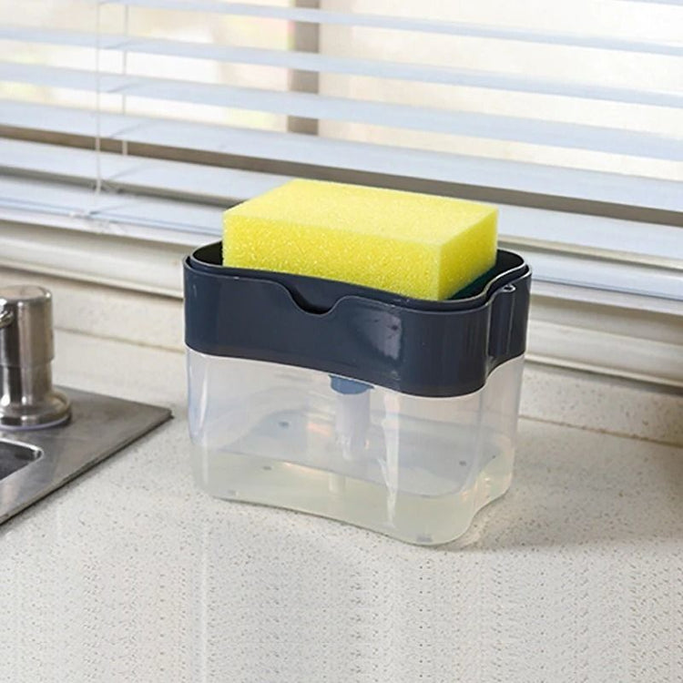 Dispensador de detergente líquido de fregadero 2 en 1 con esponja, caja de jabón líquido tipo prensa.